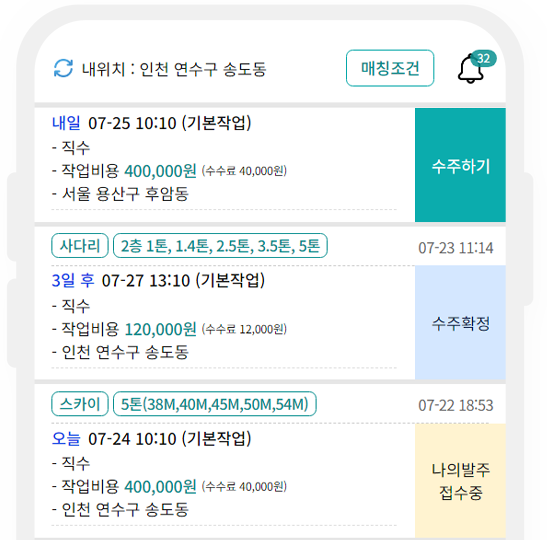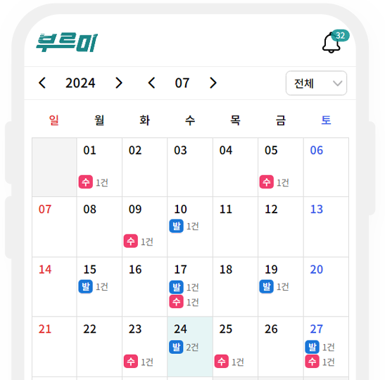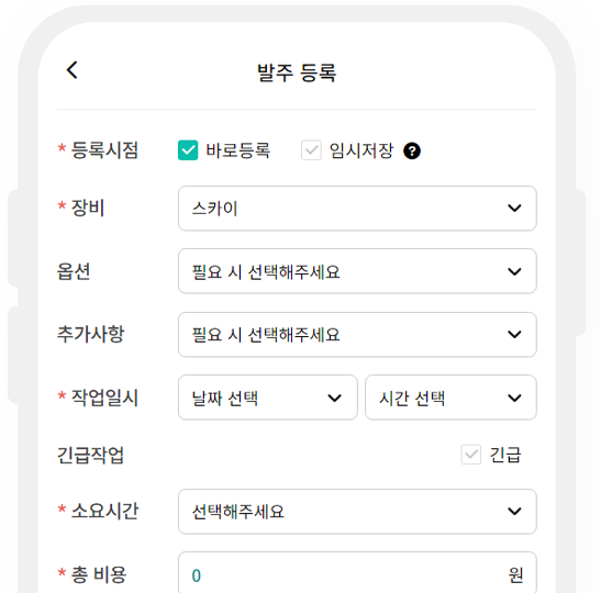 부르미 쉽고 편리하고 효율적인 원클릭 특수차 임대플랫폼 필요한 건설장비 배차는 부르미크레인, 스카이, 사다리차, 그 외 건설장비 그리고 화물차 배차 서비스를 제공 대행하는 부르미입니다. 부르면 현장에 신속하게 도착하여 안전한 작업 안전한 물류에 도움을 드리고자 합니다. 많은 이용으로 사업에 도움이 되었으면 합니다. 감사합니다. 특수차가 필요할땐 - 부르미 현장에서 특수장비가 필요하다면 간편하게부르미의 발주를 통해 불러주세요 발주하기 필요한 장비의 옵션부터 작업일시까지 간편하게 발주 할 수 있어요 수주하기 나의 보유 장비에 맞게 수주가능한 목록이 표시되어클릭 한번에 쉽고 간편하게 수주를 진행할 수 있어요 일정관리 나의 수주 또는 발주 일정을 달력을 통해 확인하고나의 스케줄을 한눈에 쉽게 관리하기 편해요 알림기능 알림기능을 통해 수주 또는 발주 등나에게 필요한 정보를 실시간 알림메세지를 받을 수 있어요 부르미 앱 설명 회원가입 알림기능 수주하기 발주하기 일정관리 마이페이지 도움이 필요하실 때는언제든지 상담이 가능해요 부르미에 대해 궁금한 점이 생기면 바로 문의해 주세요. 상담문의010-8841-2404